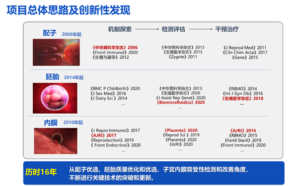 项目组针对反复妊娠失败患者,历时16年攻关,围绕“配子-胚胎-内膜”不断进行关键技术突破和创新,取得了系统性原创成果。