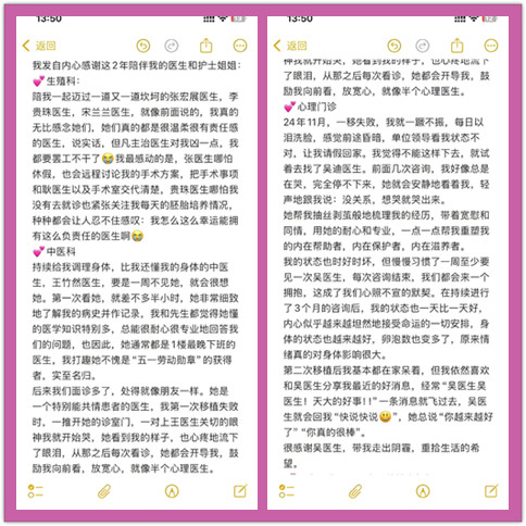 "张宏展主任是我无头苍蝇一样到处咨询时,唯一没有泼我冷水的医生。"张女士在信中写道,"她给了我明确的治疗方案,让我真的看到一丝曙光。"
