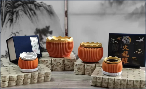 它集推拿、艾灸、热熨等多种效果于一身,罐体由紫砂与玄石特制,罐口镶金银,形如花瓣,内置道地蕲艾柱。点燃后温和发热,像一条“火龙”在背上游走,帮你把寒气、湿气统统赶走!