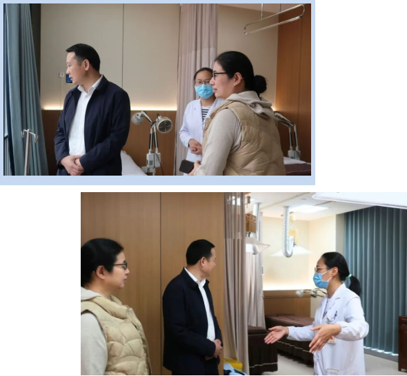 视察期间,梅林街道领导一行逐层深入我院全诊疗场景,从门诊诊室到住院病区,从一站式服务中心到生殖医学专区,从中医科、免疫科到妇产中心、深圳中山生殖与遗传研究所,开展了全覆盖、全流程的实地走访。