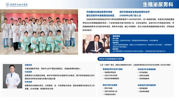 如今,我们已成为年门诊量超27000人次、住院手术量稳居深圳前列的男性健康核心学科。四十年间,我们构建起覆盖男性全生命周期、融合生殖男科、泌尿外科与中西医结合男科的完整服务体系。这里不仅诞生了深圳首家无精子症专病门诊,更沉淀下“厚积学术,融贯中西”的诊疗哲学。