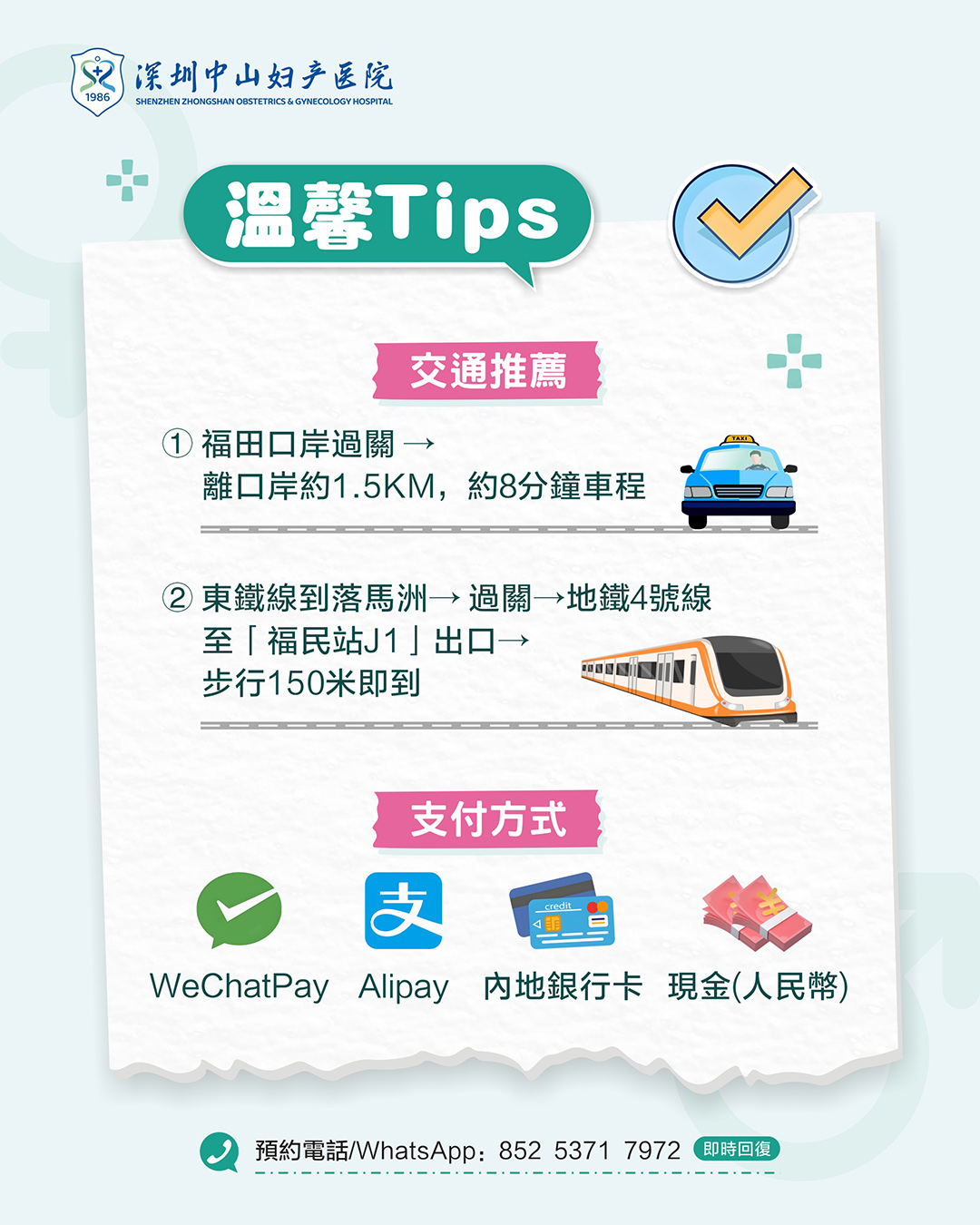 支付:微信支付 / 支付寶 / 內地銀行卡 / 人民幣現金