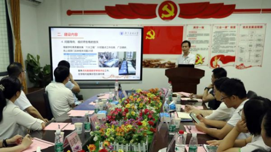接着,广东药科大学基础医学院第六党支部书记汪胜以对标“七个有力”,构建“四化机制”为主题,分享入选教育部“全国党建工作样板支部”创建培育单位的历程和多措并举开展党纪学习教育的情况。