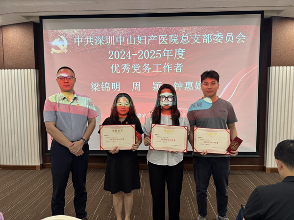 为庆祝建党 104 周年,充分发挥先进典型引领作用,激励全院党员立足岗位、争先创优,进一步增强党组织凝聚力和战斗力,2025年7月31日下午,深圳中山妇产医院 7 月员工大会暨 2025年“七一”表彰会在学术报告厅举行。党总支书记蒋颖爽、院长邓江林等院领导,党员及预备党员等全院员工参加大会。会上对经民主推荐、组织考察和党总支审议选出的 6 名“优秀共产党员”,3 名“优秀党务工作者”进行了表彰。邓江林和蒋颖爽分别为他们颁奖。