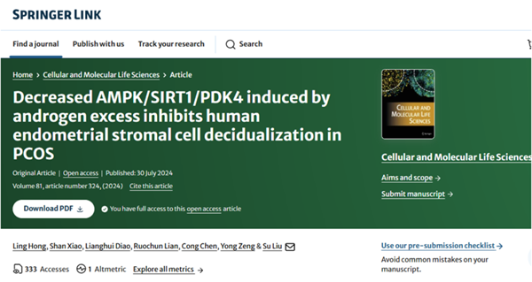 近日,深圳中山妇产医院生殖医学研究中心及生殖免疫研究团队在国际知名学术期刊《Cellular and Molecular Life Sciences》上发表了一项突破性研究。