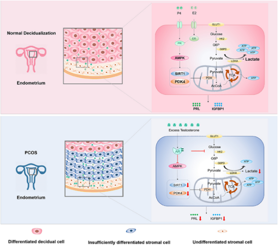 该研究首次揭示高雄激素通过抑制AMPK/SIRT1/PDK4信号通路干扰子宫内膜蜕膜化进程导致不孕的分子机制,为多囊卵巢综合征(PCOS)女性不孕症治疗提供了新的潜在靶点和新思路。