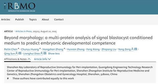 陈培林、黄春宇和张宏展为共同第一作者,曾勇、孙青和刁梁辉为共同通讯作者。我院生殖医学中心、临床研究中心、检验中心以及信息中心团队为本项目实施提供了大量支持,项目组感谢所有参与本研究的志愿者。本项目获得国家自然科学基金和深圳市基础研究重点项目资助。