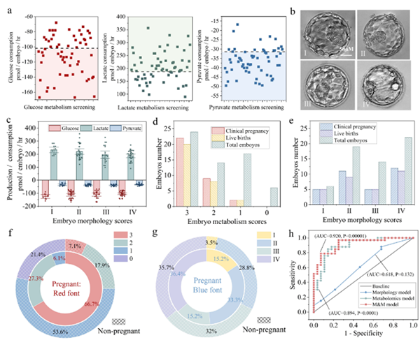 团队对一百多例临床单胚胎移植后的剩余胚胎培养液进行系统检测和妊娠结局追踪。结果表明,发育潜能较高的胚胎消耗更多的葡萄糖和丙酮酸,同时产生更多的乳酸。值得关注的是,代谢指标与传统形态学评分之间的相关性较弱,提示代谢分析提供的是互补性而非冗余的信息。当将代谢数据与形态学评分整合后,联合预测模型的ROC曲线下面积(AUC)达到92.0%。 需要强调的是,该研究为回顾性单中心研究,样本量有限,且报告的终点指标为临床妊娠率而非活产率。正如论文讨论中所述,要真正应用于临床,还需开展更大规模、多中心的验证研究。